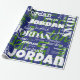 Dieses moderne, sich wiederholende Schriftart-Muster blau und grün präsentiert personalisierte Geburtstagsverpackungspapier mit ihrem Namen oder Familiennamen in einem sich wiederholenden Wortmuster mit verschiedenen trendigen Schriftart sportlich blau, sportlich grün und weiß, die Ihr Sportteam repräsentieren könnten. Ihr Empfänger wird Liebe haben, ihren Namen und die Farben des Sportteams zu sehen, die die Vorderseite ihrer Geschenke ziehen! Bestellen Sie eine Rolle für jedes Familienmitglied!