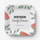 Diese modernen Wiedersehen-Papier-Teller der Familie bieten eine sommerliche thematische Grenze von Zweigen grüner Blätter und Keilen von Wassermelonen. Dieses skurrile Design ist perfekt für ein Sommerpicknick im Freien.