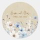 Unsere modernen Hochzeitsticker für die Wildblume sind eine wunderbare Möglichkeit, Ihre Veranstaltung zu feiern und zu teilen. Diese atemberaubend gestrichenen, blauen Aquarellfarben-Wildblumen sind ideal für den Frühling oder Sommer, für jede Gartenhochzeit.