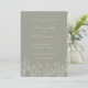 Elegantes, einfaches, minimalistisches Wildblume Blumendesign in Sage Green lädt zum Frühling, Sommer, Hochzeit im Herbst ein. Es bietet einen romantischen Look mit handgeschriebener Schriftzeichen.