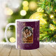 Maßgeschneiderte Foto Weihnachts-Tasse mit Winterschneeflocken Hintergrund. Machen Sie Ihren Urlaub zu einem besonderen Foto mit einer Weihnachtsfeier Tasse. Diese Tasse mit einem schlanken Snowflake-Design kann mit Ihrem bevorzugten Foto und Namen personalisiert werden. Eine moderne, elegante Art, ein warmes Getränk zu genießen oder als personalisiertes Weihnachtsgeschenk zu schenken.