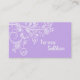 Moderne Wirbel und Vögel lila Visitenkartenvorlage mit weißen Wirbel und gepunkteten Linien mit Blätter, Blume und Vögeln auf Hängeringen auf dem lila Lavendel. Dieses niedliche, moderne Design hat ein Retro-Ambiente und ist ideal für den persönlichen oder beruflichen Gebrauch.