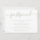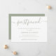 Mit dieser minimalistisch grünen Karte mit einem modernen Script-Schriftart verkünden Sie den Aufschub Ihrer Hochzeit.