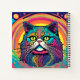 Cooles Zen Cat Design in hellen, lebendigen Farben. mehrfarbig. Regenbogenfarben. Lila, blau, grün, gelb, rot, rosa.