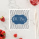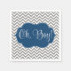 Auf Papierservietten ist ein Zickzack, schick graues Muster mit blauem Rahmen aufgedruckt. Ideal für eine Babydusche. Gut und niedlich.