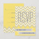 Moderne Zickzack, graue, gelbe RSVP Antwort-/Antwortkarte mit einem modernen Zickzack-Zickzack Muster in Gelb, Grau und Weiß. Dieses elegante Design ist ideal für moderne Bräute mit seiner großen modernen Typografie, aber auch für eine traditionelle Hochzeit wegen der klassischen Zickzack Streifen geeignet. Es ist eine Vorlage, Teil eines Hochzeitsvortrags und kann für jede Jahreszeit, d.h. Frühjahr, Sommer, Herbst oder Winterhochzeiten, verwendet werden. Ändern Sie einfach die Hintergrundfarbe - gelb - in die Farbe Ihrer Wahl, indem Sie auf "Anpassen Sie es" klicken, um aus Hunderten von Farben auszuwählen.