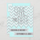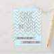 Moderne Zickzack graue, aqua-blaue Hochzeit Save the Date Postcard, die ein modernes Zickzack-Zickzack Muster mit hellaquablau, grau und weiß Streifen aufweist. Dieses elegante Design ist ideal für moderne Bräute mit moderner Typografie. Es ist eine Vorlage, Teil eines Hochzeitsfestes Set und kann für jede Hochzeitsfeier verwendet werden. Ändern Sie einfach die Hintergrundfarbe - Aquablau - in die Farbe Ihrer Wahl, indem Sie auf "Anpassen" klicken, um aus Hunderten von Farben auszuwählen.