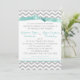 Graues Zickzack oder Zickzack Motiv mit einer hübschen aquafarbenen Bogen-Hochzeitseinladung.