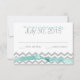 Graues Zickzack- oder Cheveron-Muster mit hübscher aquafarbener Bugzeiterwiderungskarte, um unsere Einladung zu ergänzen.