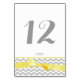 Modernes Zickzack oder Zickzackmuster in Grau und Weiß mit gelb bogenbedruckter Tischnummer-Karte, um unser Set zu ergänzen, kann personalisiert und individuell bestellt werden. Alle Teile dieser Karte sind gedruckt, es ist kein echtes Band angebracht.