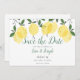 Diese moderne botanische Zitronenkarte Save the Date ein elegantes Drehbuch, das Save the Date über Ihrem Set liegt, in schicker Typografie. Entwickelt von Thisisnotme©
