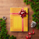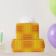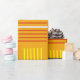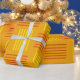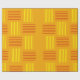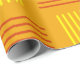 Dieses Verpackungspapier hat ein modernes Design Mitte des Jahrhunderts, das wie ein Gewebe mit roten und gelben Linien auf einem Feld aus Gold aussieht.