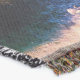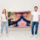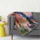 Blaue, lila, weiße Aquarellkunst auf einer Decke.