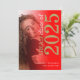 Moderne 2 Foto Red Gold 2025 Abschluss Ankündigung. Eine stilvolle Typografie und Foto-Design, um die Neuigkeiten Ihres High School Senior Absolventen bekannt zu geben, mit stilvollen großen Typografie gedreht und auf der rechten Seite oben in weiß und gold. Personalisieren Sie die Erholung des Textes einfach, inklusive Ihrer Nachricht auf der Rückseite. Ersetzen Sie die Fotos in den Vorlagen auf jeder Seite durch Ihre eigene.