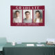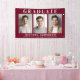 Moderne bordeauxrote Graduierungsparty Begrüßung Banner-Zeichen und Foto-Hintergrund-Requisiten mit 3 Fotos, "Graduate" in eleganter weißer Typografie und den Namen, Schule und Klasse Jahr in schlicht weißer Typografie.