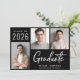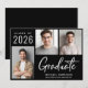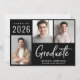 Moderne Schwarze Abschluss-Ankündigung mit 3 Fotos und "Graduate" in einem zeitgenössischen weißen Drehbuch. Fügen Sie den Namen, das Unterrichtsjahr und die Schule oder Universität in einfachen weißen Typografie.
