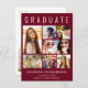 Moderne bordeauxrote Abschluss-Ankündigung mit "GRADUATE" über die Spitze in großen weißen Typografie, eine 7-Foto-Collage und ihren Namen, Klassenjahr und Schule in schlicht weißer Typografie auf der Vorderseite. Fügen Sie auf der Rückseite ein zusätzliches Foto und eine benutzerdefinierte Meldung hinzu.