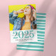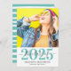 Personalisierte moderne Abschluss-Ankündigungskarte mit einem Foto des Abschlusses, das Jahr 2024 in aquamarin, ihren Namen, und die High School/Uni, die ihre besucht.
