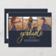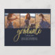 Abschluss 4 Foto Collage Script Lila Gold Budget Announcement Karte. Passen Sie diese einfach an, indem Sie den Text ändern und die Fotos durch Ihren ersetzen. Eine moderne und trendiere Art, Ihren Abschluss in diesem Jahr bekannt zu geben!