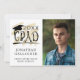 Ankündigung der Abschluss Leistung Ihres Sohnes oder Ihrer Tochter mit dieser Abschluss-Ankündigung Karte mit 2 Fotos Ihres Absolventen, eine moderne handgeschriebene bürstenkalligraphische Titel Design GRAD mit Klasse Jahr und Graduierungspapier oder Mörtel in Schwarz und Gold vor einem bearbeitbaren weißen Hintergrund mit Namen und Schule. Auf der Rückseite können Sie Ihren eigenen Text über die Leistungen und Pläne Ihres Absolventen hinzufügen. HILFE: Für Hilfe bei der Modifikation/Personalisierung des Designs, bei Farbänderungen, bei der Übertragung des Designs auf ein anderes Produkt oder wenn Sie die Dinge koordinieren möchten, wenden Sie sich bitte an den Designer, BEVOR er die Bestellung über die Registerkarte Zazzle Chat MESSAGE oder per E-Mail an makeitaboutyoustore@gmail.com.