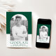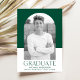 Einfache und stilvolle Abschluss-Ankündigung mit dem Foto des Absolventen in einem Bogen-Rahmen mit einem grün-weißen Blockhintergrund. "Graduate" wird in grün-moderner Schrift mit dem Namen, der Schule und dem Abschluss des Absolventen angezeigt, wie unten gezeigt.