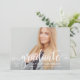 Stilvolle und elegante Abschluss-Ankündigungskarte und Party Einladung verfügen über ein Senior-Foto mit "Graduate"-Skript-Overlay. Personalisieren Sie den modernen Text mit dem Namen, der Schule und dem Unterrichtsjahr Ihres Abschlusses. Dieses zweiseitige Kartendesign enthält den Text der Graduierungsparty-Einladung auf der Rückseite. Das hübsche Schwarz-Rosa- und Dunkelgrau/Weich-Schwarz-Farbschema kann an die Foto- oder Party-Farben angepasst werden.