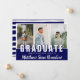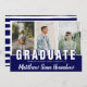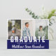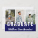 Feiern Sie Ihre Neuigkeiten mit Freunden und Familie und kreieren Sie die perfekte Ankündigung mit dieser Vorlage "Navy Blue Graduate 3 Fotos Abschluss Announcement Card". Dieses hochwertige Design ist einfach zu anpassen, um einzigartig zu sein! Diese Foto Abschluss Ankündigung enthält 3 (drei) der Lieblings-Fotos Ihres Abschlusses in einer modernen Collage mit ihrem Klassenjahr, Name in Kalligraphie Skript Typografie und High School oder Uni. Feiern wir den Absolventen!