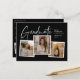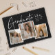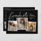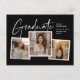 Ein moderner Script Graduate Foto Collage Abschluss Einladung mit handgeschriebenem Schriftart und 3 Fotos auf der Vorderseite mit Namen und Abschluss Details. Die Rückseite hat 2 Fotos und Party Details. Klicken Sie auf die Schaltfläche Bearbeiten, um dieses Design anzupassen.