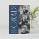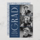 Stilvolle Abschluss-Ankündigung mit den drei Fotos des Absolventen rechts neben dem Design in einer vertikalen Anordnung. "Grad" wird in weißem, modernem Deko mit mariniertem Hintergrund dargestellt. Personalisieren Sie die Ankündigung des modernen Foto-Abschlusses, indem Sie den Namen des Absolventen, das Jahr des Abschlusses und den Namen der Schule hinzufügen. Das Design kehrt sich um, um eine Marine und weiß geometrisch wirbelnden Hintergrund. Perfekt für Uni-Abschluss und Gymnasiasten!