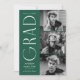 Stilvolle Abschluss-Ankündigung mit den drei Fotos des Absolventen rechts neben dem Design in einer vertikalen Anordnung. "Grad" wird in weißem, modernem Deko mit grünem Hintergrund dargestellt. Personalisieren Sie die Ankündigung des modernen Foto-Abschlusses, indem Sie den Namen des Absolventen, das Jahr des Abschlusses und den Namen der Schule hinzufügen. Das Design kehrt sich um, um einen grün-weißen geometrisch wirbelnden Hintergrund anzuzeigen. Perfekt für Uni-Abschluss und Gymnasiasten!