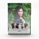 Mit diesem White Modern Foto Collage Abschluss Foto Block erstellen Sie einen einzigartigen Abschluss-Sake für Ihre Kindheit. Foto-Blockdesign ermöglicht die Platzierung eines großen Fotos im Hintergrund und von vier kleineren Fotos im Collage-Format. Komplett mit einem einfachen schwarzen Overlay und elegantem Skript- und Typografie-Design. Personalisieren Sie sich selbst oder Familienmitglieder als wertvolles Geschenk des Meilensteins Ihres Kindes.