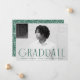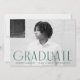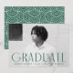 Einfache Ankündigung des Abschlusses mit dem waagerechten Foto des Absolventen mit "Graduate" in grüner, moderner Deko-Schrift. Personalisieren Sie die Front der Ankündigung des Single Foto Abschluss durch Hinzufügen des Graduiertennamens, Schule und Grade Jahr. Die Ankündigung kehrt sich um, um eine grün-weiße geometrische Swirl-Design.
