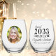 Die perfekte Sake für den modernen Absolventen: unser Foto und personalisiertes Weinglas! Egal, ob Ihr Liebling ein Highschool-Absolvent oder ein Uni-/Universitätsabsolvent ist, dieses schlichte und elegante Glas ist der perfekte Weg, um an ihre Leistungen zu erinnern. Mit seinem eleganten und modernen Design kann dieses Weinglas mit dem beliebten Foto, dem Namen, dem Jahr des Abschlusses und der Schule des Absolventen personalisiert werden. Dieses aus hochwertigen Materialien gefertigte Weinglas ist die perfekte Größe, um bei einem Glas Wein oder einem anderen Lieblingsgetränk zu trinken. Durch seine dauerhafte Bauweise wird er für die kommenden Jahre ein hochgeschätztes Mémento bleiben. Gönnen Sie sich mit diesem personalisierten Weinglas Stil und Sentimentalität. Es ist der perfekte Weg, um Ihrem Lieblingsschüler zu zeigen, wie stolz Sie auf ihre Leistung sind.