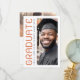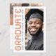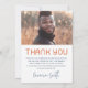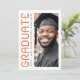 Moderner Abschluss Dankeschön-Karte mit Ihrem Foto und den Text "graduate" in einem modernen Schriftart vertikal ausgerichtet auf die links. Zusätzliche Foto und benutzerdefinierte Dankeschön-Nachricht auf der Rückseite. Dunkelblauer Text auf weißem Hintergrund.