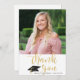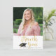 Modernes Abschluss Foto Dankeschön-Karte mit extravaganten kalligraphischen Schriftzeichen in Imitaten metallisches Gold, eine schwarze Graduierungshülle und ein Foto auf der Vorderseite mit dem Namen und dem Jahr Ihres Absolventen. Die Rückseite bietet die Möglichkeit, Ihre Dankeschön-Nachricht vorauszudrucken oder den Beispieltext zu löschen, um den Bereich leer verlassen für Handschriften der Wertschätzung. HILFE: Für Hilfe bei der Modifikation/Personalisierung des Designs oder der Übertragung des Designs auf ein anderes Produkt, wenden Sie sich bitte an den Designer BEVOR Bestellung über Zazzle Chat oder makeitaboutyoustore@gmail.com.