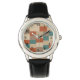 Uhr, Klassische Damenuhr mit schwarzen Lederarmband