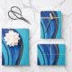 Moderner Abstrakter Fluss Art - Blau und Gold Geschenkpapier Set