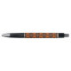 Dieser Stift zeichnet sich durch ein auffallendes geometrisches Muster aus, das ein auffälliges Design schafft. Die sich wiederholenden Motive stilisierter Bögen und Kreise in lebendiger Orange heben sich von einem schwarzen Hintergrund ab und schaffen einen scharfen und modernen Look. Es ist ein einzigartiges Accessoire, ideal um einen Pop Farbe und eine Touch abstrakter Kunst zu Ihren Schreib- und zeichnend Vorräten hinzuzufügen.
