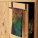 Dieses Handtuch ist mit einer farbenfrohen abstrakten Regenbogenwasserfarbe und einer Farblackierung auf schwarzem Hintergrund ausgestattet.