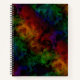 Dieses spiralgebundene Notizbuch zeichnet sich durch eine farbenfrohe abstrakte Regenbogenwasserfarbe und eine Farblackierung auf schwarzem Hintergrund aus.
