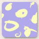 Dieser moderne, akrilische Untersetzer ist mit weißgelben Flecken und grafischen Gesten auf einem schlichten, lebendigen Lavendelhintergrund gestaltet.