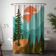 Moderner Abstrakter Wald, Gebirge und Sonnenaufgan Duschvorhang