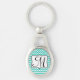 Moderner Aquamariner Glitzer Zickzack Zig Zag Stripe Monogram, erste Schlüsselkette