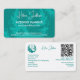 Schließen Sie sofort, Impress sofort! Erleben Sie einen unvergesslichen ersten Eindruck mit diesen wunderschön gestalteten, individuell anpassbaren Hochzeitsplanern. Genauso wie die sorgfältig geplanten Hochzeiten, die Sie organisieren, strahlt Ihre Visitenkarte Raffinesse aus. Die aquamarine Farbe und das dezente Blumenmotiv und das Brautmotiv geben einen Eindruck von den perfekten Events, die Sie kreieren. Die Rückseite bietet einen leicht scannbaren QR-Code, der es potenziellen Kunden ermöglicht, mühelos auf Ihre Website oder Kontaktinformationen zuzugreifen. Sie bietet auch einen klaren Überblick über Ihre umfangreichen Dienstleistungen, sodass potenzielle Kunden Ihr umfassendes Angebot verstehen können. Passen Sie Ihre Wünsche an, um Ihre Marke und die außergewöhnliche Sorgfalt, die Sie für jedes Hochzeitsdetails bringen, perfekt zu repräsentieren.