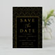 Elegante Deko Hochzeit bewahrt das Datum mit einem goldenen Bogenmuster mit schwarzem Hintergrund. Personalisieren Sie die moderne Kunst Deko speichern Sie die Daten mit Ihren Namen und Hochzeitsdetails Goldfolie Schrift.