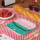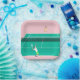 Moderner Art Tennis Match Player Rosa Grün Pappteller