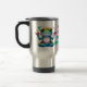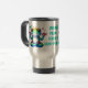 Inhale Peace, Exhale Hop-Piness, niedlicher Frosch übt Meditation und reflektiert über die Wichtigkeit des Atmens. Farbenfroh in Grün und Rosa, auf einer Reise-/Pendlerfahrten-Tasse.