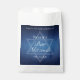 Schöne dunkelblaue Farbtöne schaffen eine Textur wie Wasser auf diesen formellen Bar Mitzvah Gastgeschenk Taschen. Elegante weiße minimalistische Schrift auf einer Gunsttasche mit dem Namen Ihres Sohnes auf dem subtilen Star of David zu feiern, die das Kommen Ihres jüdischen Sohnes zu erleben.