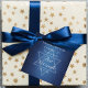 Schöne dunkelblaue Farbtöne schaffen eine Textur wie Wasser auf diesem formellen Bat Mitzvah Gastgeschenk Tag. Elegante weiße minimalistische Drehbuch mit dem Namen Ihrer Tochter auf dem subtilen Star von David zu feiern, ihre jüdische Ankunft des Alters.
