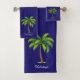 Elegante, benutzerdefinierte grüne Palme und Skript auf blauem Handtuch Set. Ideal für alle. Idealer Zuhause-Akzent oder für ein Geburtstag- und Weihnachtsgeschenk. Text kann mit Ihrem Text personalisiert werden.